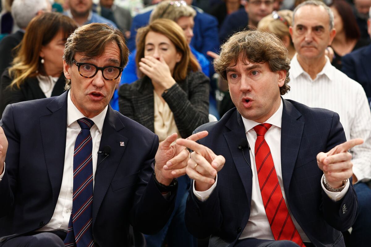Tras hacer una advertencia respecto a los “populismos”, Andueza e Illa han mostrado su compromiso con una España “plural y diversa” y lejos del mensaje “apocalíptico” de los populares de que “España se rompe”. “Aquí no se rompe nada”, ha subrayado el líder del PSC. “El único momento en que España pudo romperse fue el 1-O con un PP irresponsable, que hizo un boicot a los productos catalanes y castigó al conjunto de la ciudadanía”, ha afirmado el candidato socialista vasco que ha subrayado que la “mayor prueba de estrés” de la democracia española fue el terrorismo de ETA. “Y lo venimos desde la acción política y el compromiso”, ha zanjado.