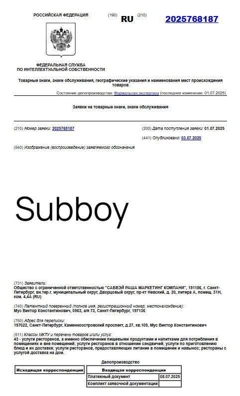 Subway в России превратился в «Саббой». Юрлицо, представляющее сеть фастфуда на российском рынке, подало заявку на регистрацию нового товарного знака.