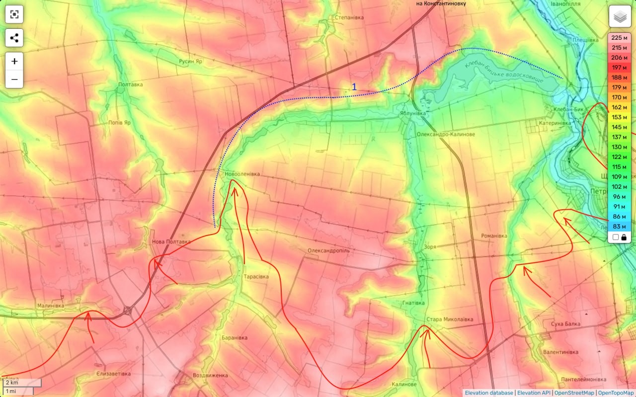 Одновременно с этим усилился нажим частей 150 мсд на Романовке, которые и постепенно выходят на ее окраину. Здесь задача выйти к Яблуновке, чтобы тем самым обеспечить рубежи для блокады дронами Константиновского укрепрайона противника.