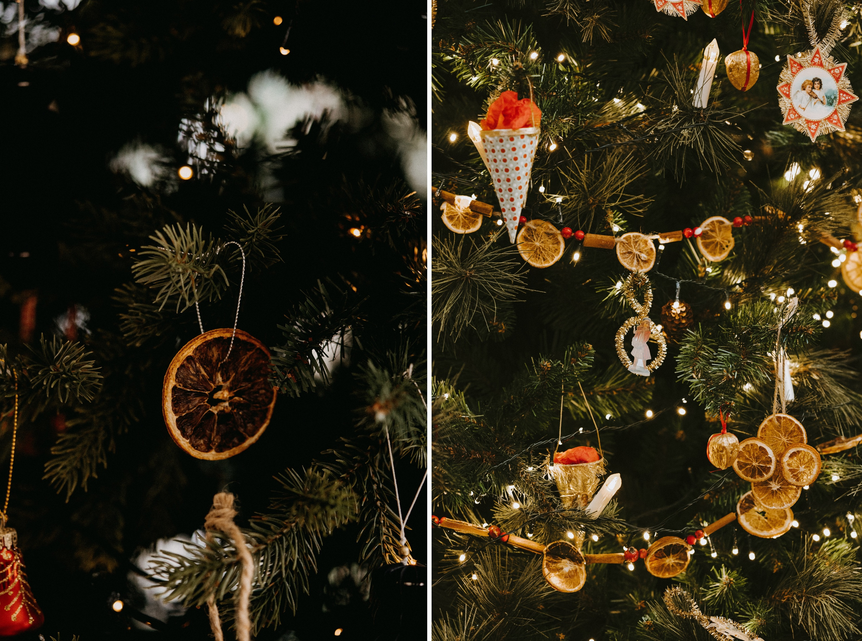 Еще один эко-способ — украшение сушеными апельсинами. Для этого нарежьте цитрусы тонкими ломтиками, выложите на застеленный пергаментом противень и отправьте в духовку, разогретую до 50-100 С° на несколько часов.