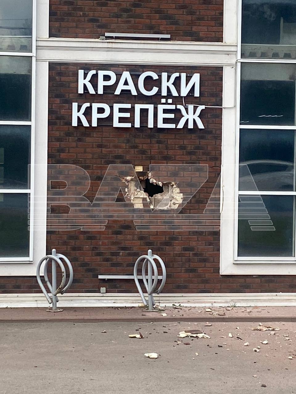 По данным «Базы», от падения осколков там пострадало три здания: магазин и частный дом в Старбеево и складское помещение на Ватутинском шоссе. В стене совсем недавно открывшегося магазина (он успел проработать только 3 месяца) пробило дыру, один из осколков даже пробил банку краски, стоящую внутри магазина. Частный дом пострадал сильнее — там обрушился целый угол (площадь около 50 кв. м.). А в складском здании на Ватутинском шоссе повреждён фасад, ангары и несколько погрузчиков.