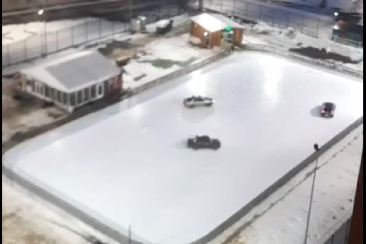 На видео три легковушки плавно кружатся по льду школьного стадиона в ЖК «Пригород Лесное». На площадке выполнено качественное ледовое покрытие. Видимо для тренировок учащихся. Однако это не смутило гонщиков-любителей.
