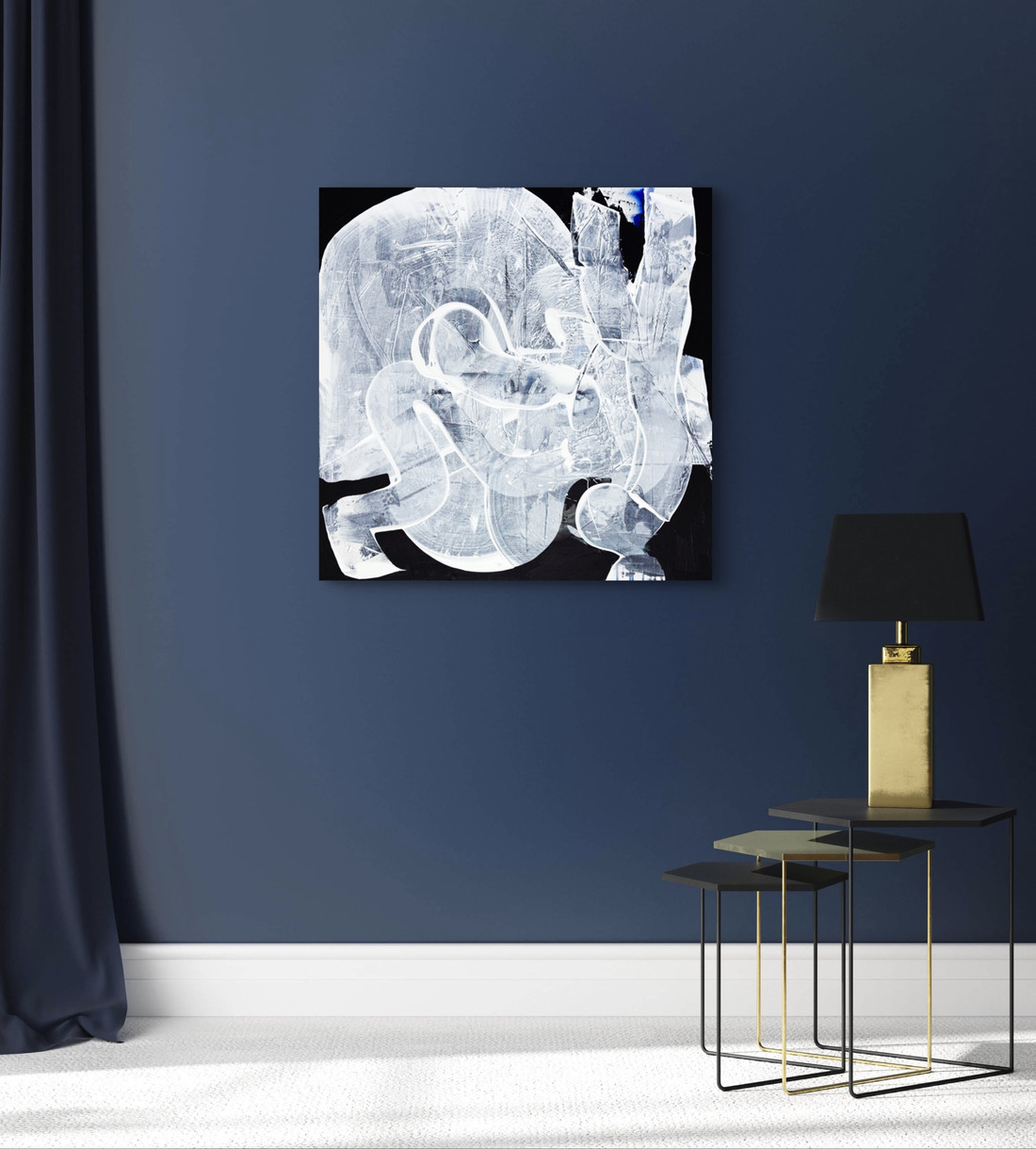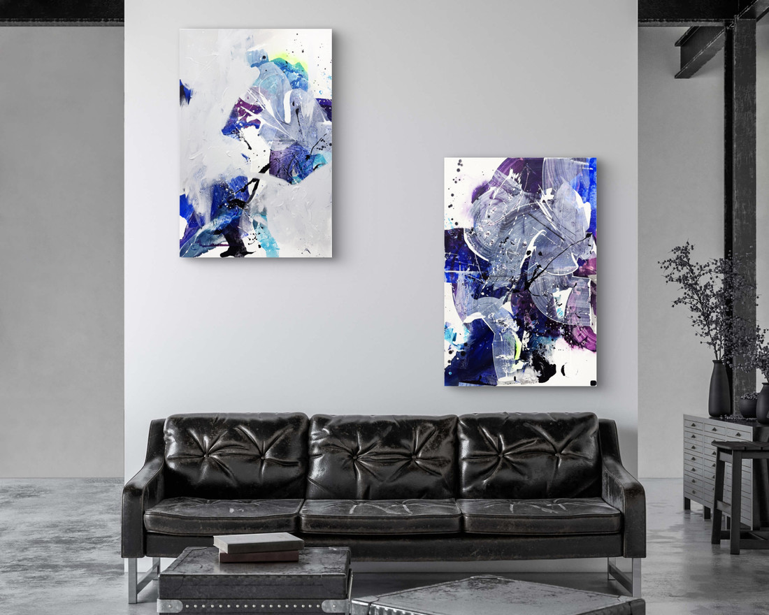 Я обожаю синий цвет, все его оттенки и подумала: у меня так мало синих картин. Теперь же их очень много! В серии я сделала 30 работ, но здесь выставлены 22. Хотелось, чтобы в зале было больше воздуха, поэтому остановились на таком количестве.