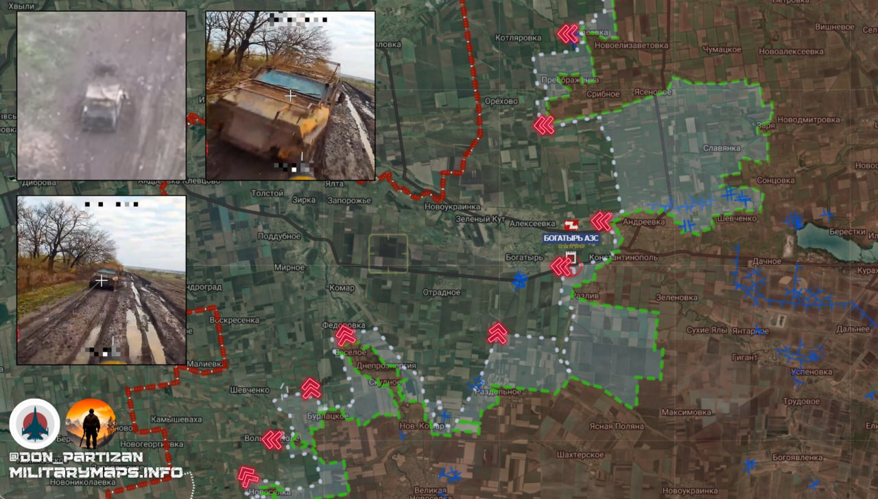 Продолжается давление на оборонительные позиции противника в направлении Богатыря, что позволило увеличить зону контроля до 300 метров в этом районе. Эти успехи ослабляют оборону ВСУ и укрепляют позиции российских войск для дальнейших атак.