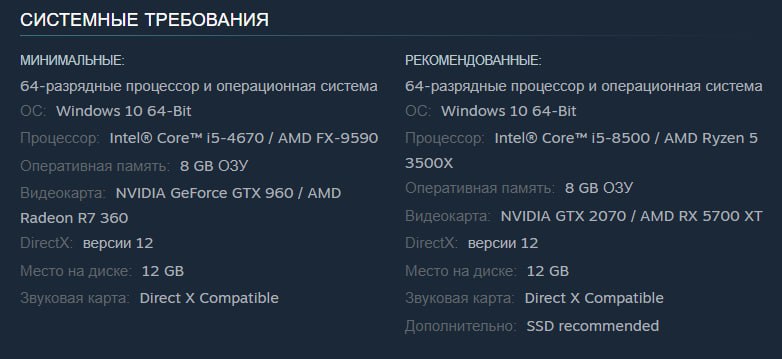 Вместе с ней стали известны системные требования — рекомендуется Intel Core i5-8500 и NVIDIA RTX 2070. Также будет: