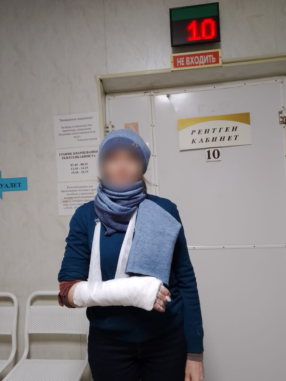 — Я не хочу, чтобы эта история повторялась. Я получила перелом обеих костей запястья, ушиб таза и легкое сотрясение мозга. В справке указана только одна травма — на момент прибытия в травмпункт на скорой. Ушиб и сотрясение тогда не ощущались. Это проявилось позже. В следующий визит к врачу я собираюсь зафиксировать и эти травмы тоже, — рассказала E1.RU Наталья. — Люди бьются, и на таких, как я, уже насмотрелась в травмпунктах — там друг на друге все сидят: и руки, и ноги, и головы у людей травмированы.