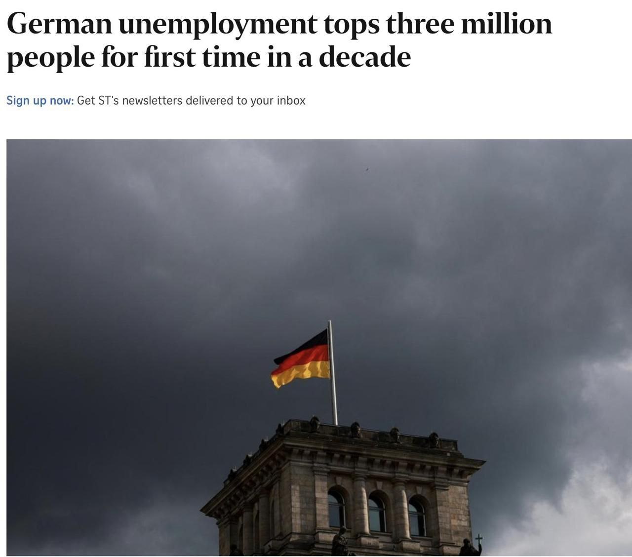 Количество безработных в Германии впервые за десятилетие превысило 3 миллиона человек. Наиболее качественные мигранты из Польше начали покидать Германию.