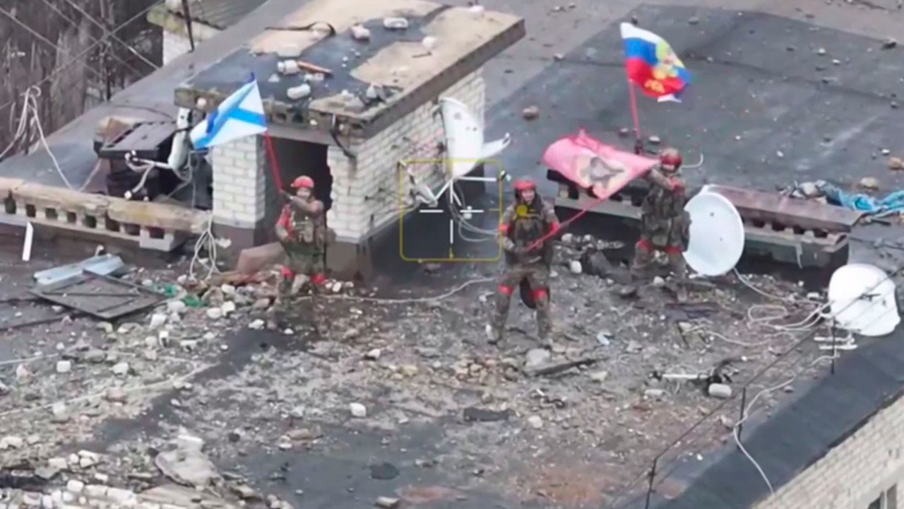 Министерство обороны России показало кадры с флагами в освобожденном населенном пункте.