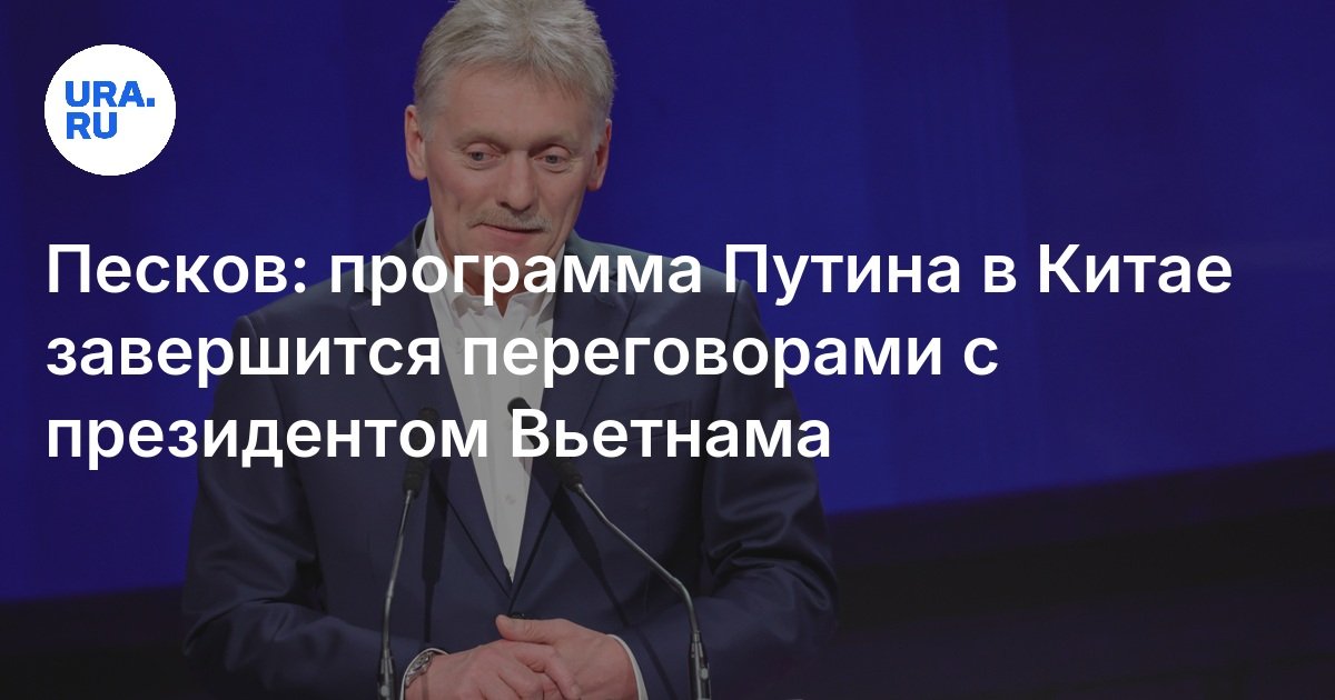 Президент России Владимир Путин завершит свою рабочую программу в Китае переговорами с президентом Вьетнама. Об этом сообщил журналистам пресс-секретарь главы государства Дмитрий Песков.