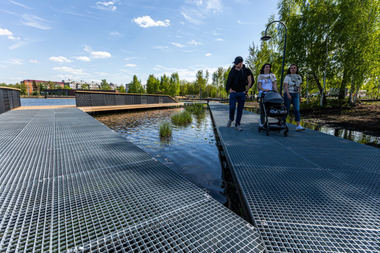 В Невьянске Свердловской области появилась набережная «Калейдоскоп времен» с прогулочной частью, сухим фонтаном и понтонным пирсом. В Электрогорске Московской области — пляж «Стахановский берег» с волейбольной площадкой, качелями, террасой и смотровой площадкой.