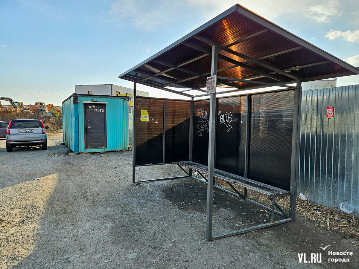 В относительно молодом районе города Патрокл появился первый остановочный павильон. В качестве жеста доброй воли её поставила компания, которая обустраивает здесь пляж, зону отдыха и озеро. Остановка временная, на ней даже есть табличка, на которой так и написано. Позже обещают смонтировать постоянную. Её разместили напротив бухты Соболь, возле озера.