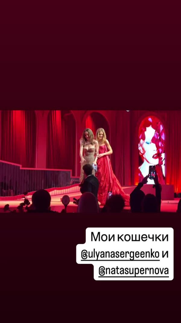 На гала-ужине присутствовала и Ульяна Сергеенко. Дизайнер представила коллекцию вечерних нарядов, а затем сама вышла на подиум в сопровождении Водяновой. 43-летняя Ульяна произвела настоящий фурор, надев полупрозрачное платье, которое продемонстрировало ее упругие ягодицы и тонкую талию.