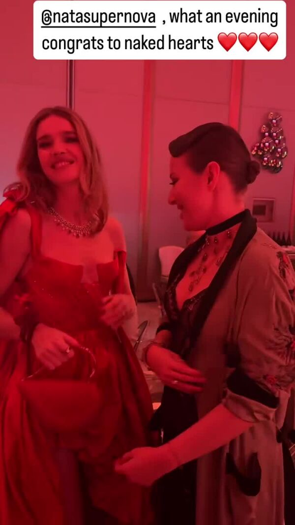 Собчак также показала, как мило беседует с хозяйкой вечера Натальей Водяновой. Супермодель восхитилась кристаллами на наряде журналистки, а та осыпала ее поздравлениями с юбилеем фонда.