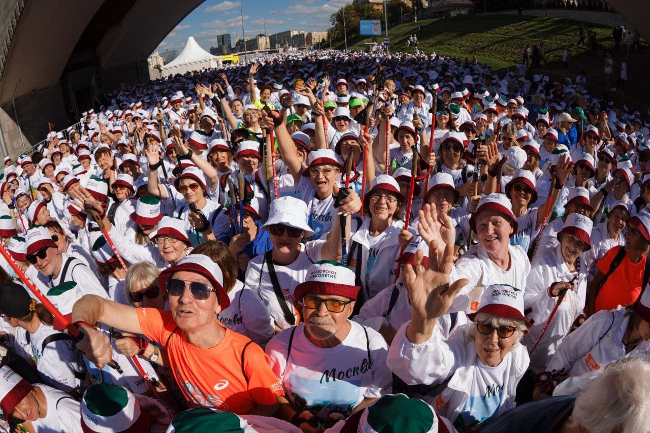 Спортивный фестиваль "День ходьбы" в Москве, прошедший 6 сентября, собрал более 20 тысяч любителей скандинавской ходьбы - это рекорд.