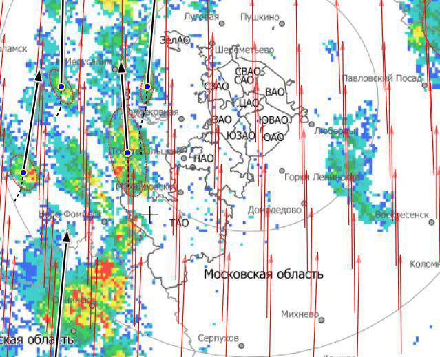 Так выглядит надвигающийся на Москву холодный атмосферный фронт из космоса. 34-градусная жара резко сменится порывами метра до 20-25 м/сек, сопровождающимися ливнями, градом и молниями.