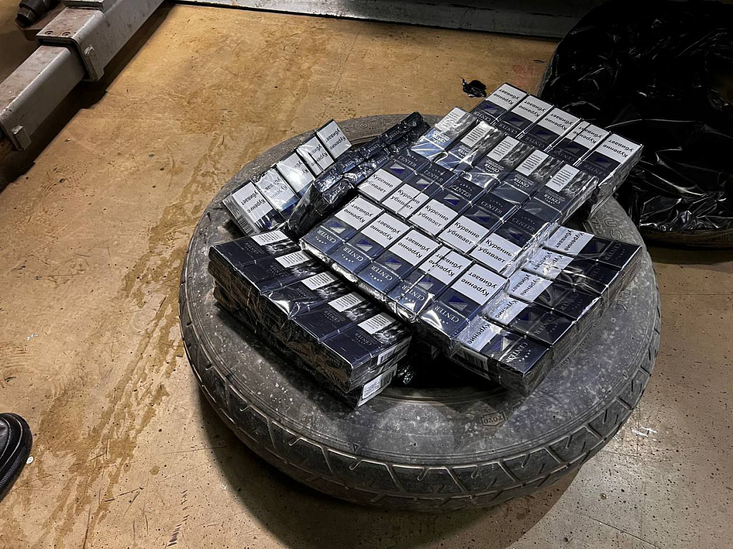 В нескольких тайниках была спрятана табачная продукция. Сигареты находились под водительским и передним пассажирским сидениями, в заднем крыле под обшивкой, а также в полости диска запасного колеса автомобиля.