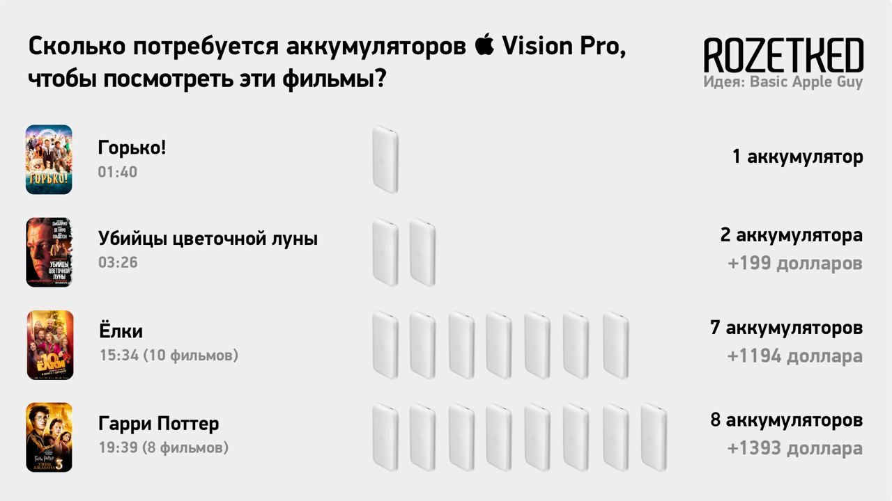 Аккумулятор Apple Vision Pro протянет только 2,5 часа воспроизведения видео