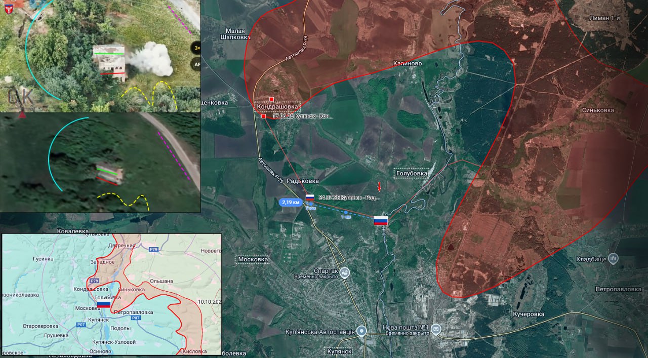 Передовая позиция ВС РФ в жилой застройке Купянска под огнём ВСУ,