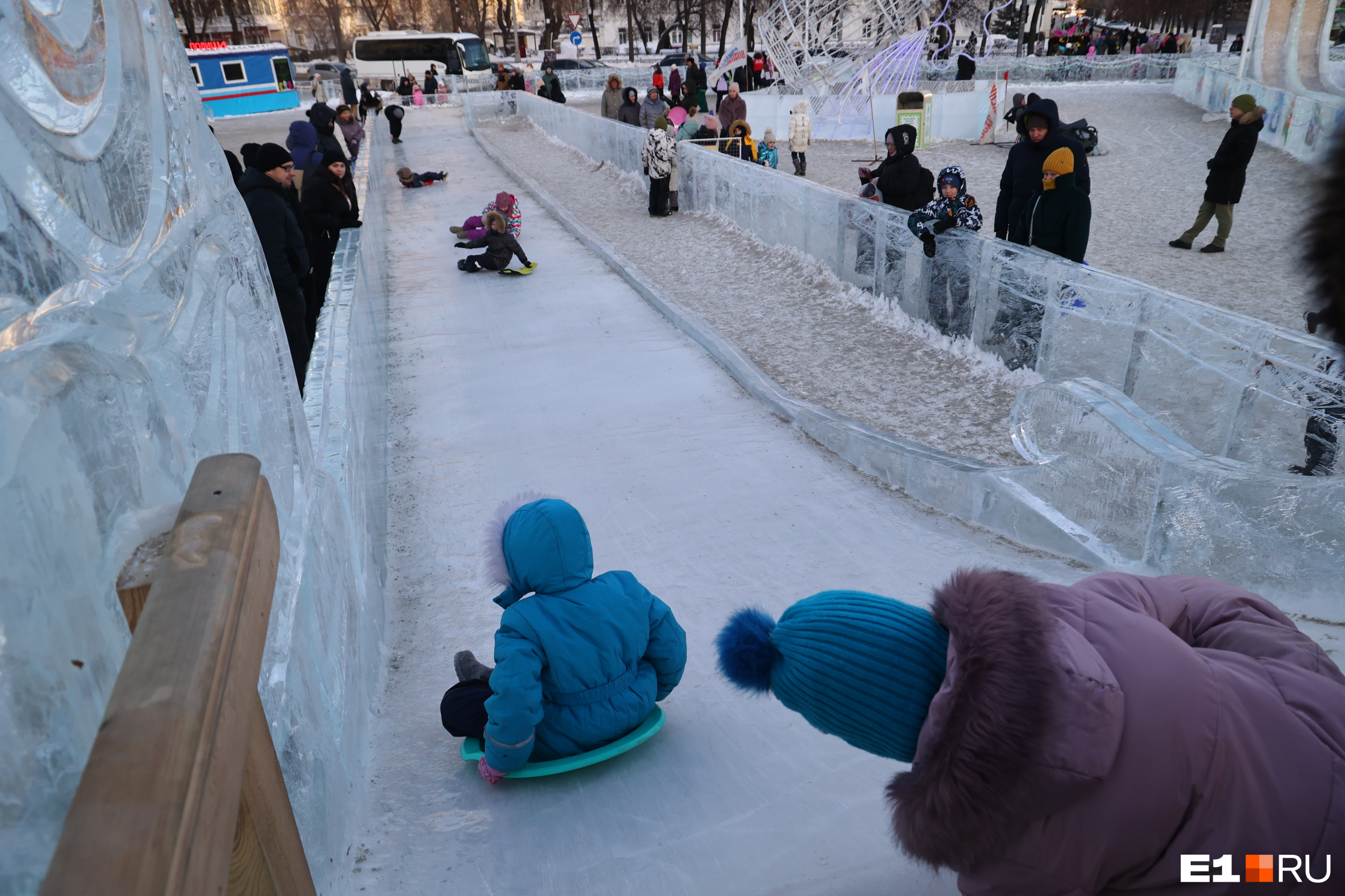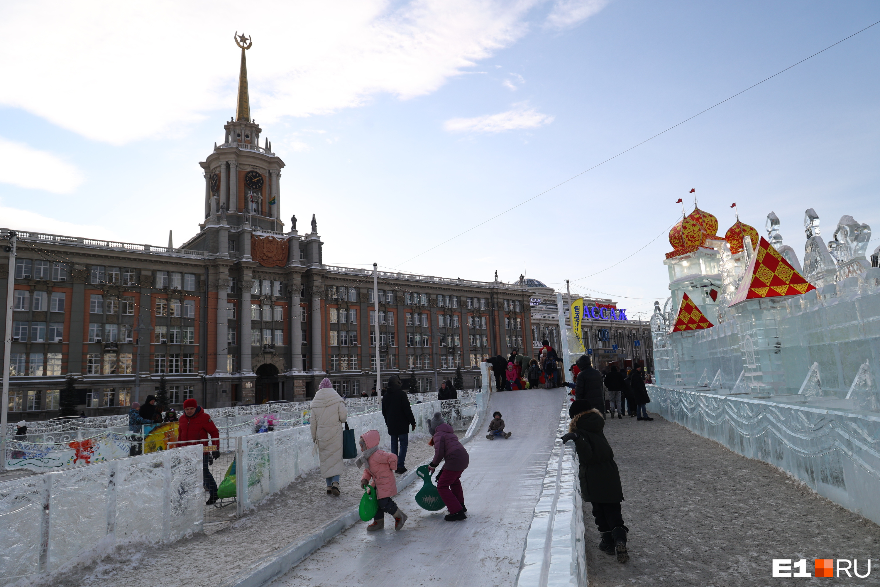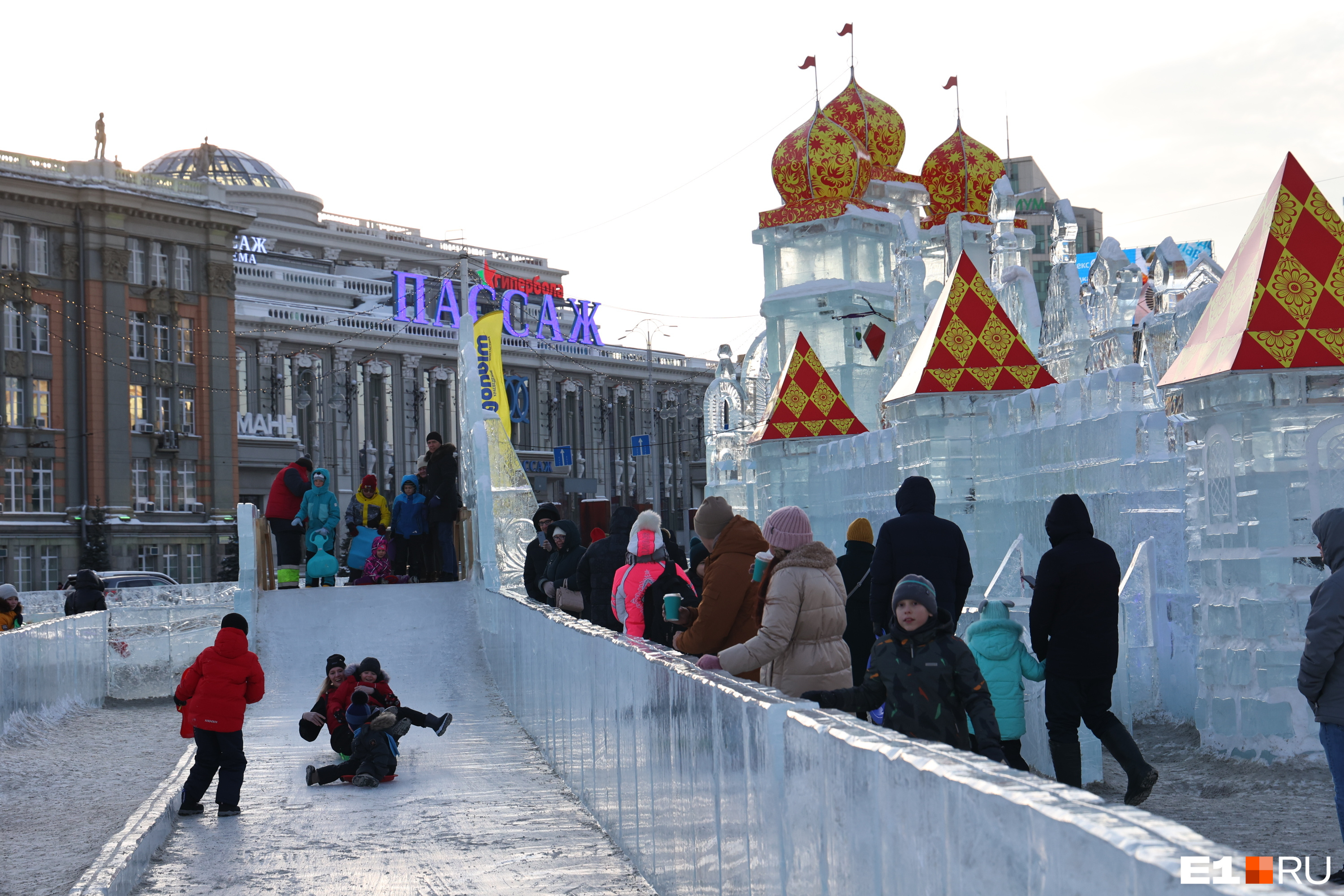 Екатеринбуржцы с детьми устроили штурм ледового городка. Посмотрите, как он погибал