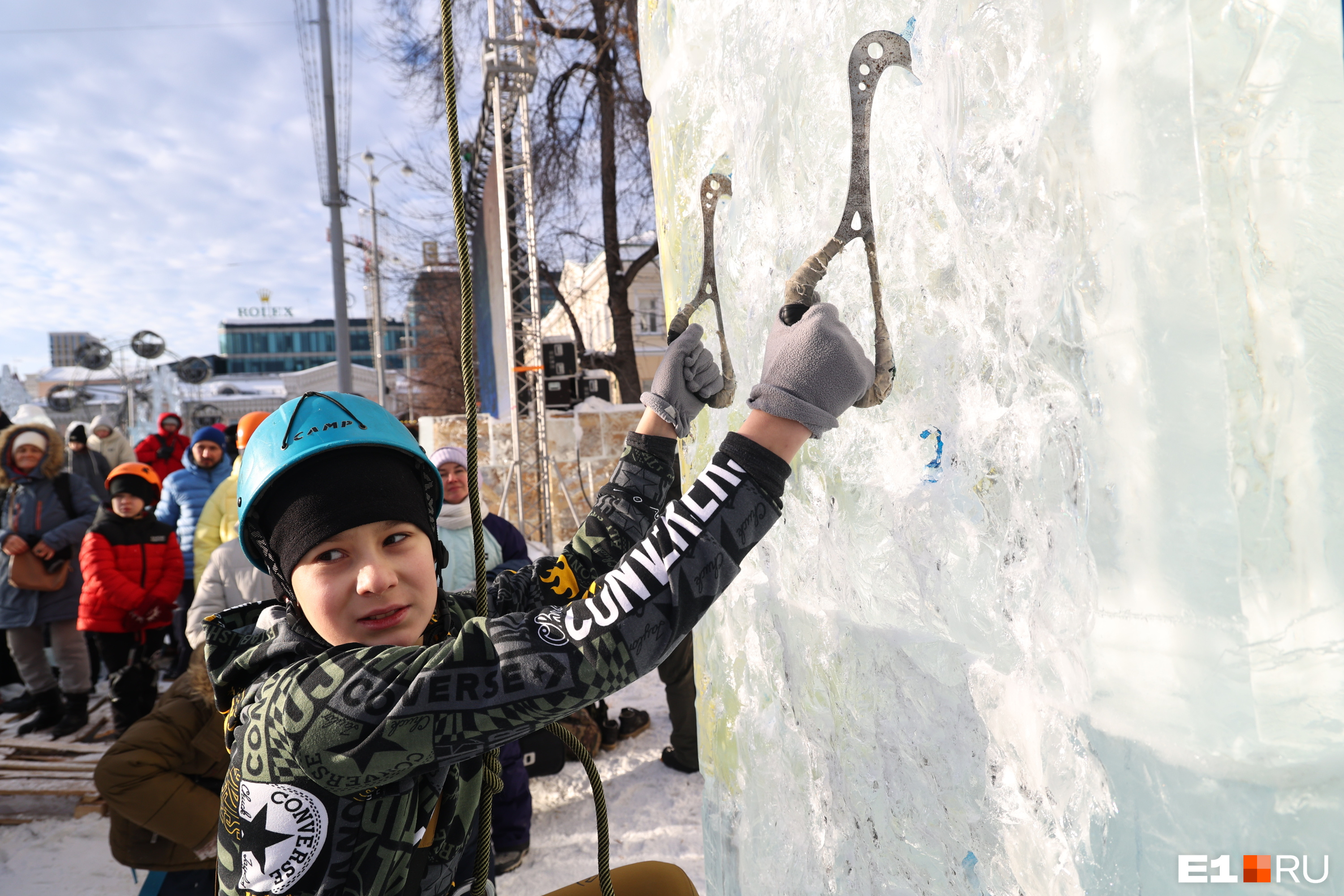 Называется всё это фестивалем «Ледовый штурм». В первый день дети и родители рисовали на льду иллюстрации к сказкам Пушкина, во второй — прошли соревнования по ледолазанию.