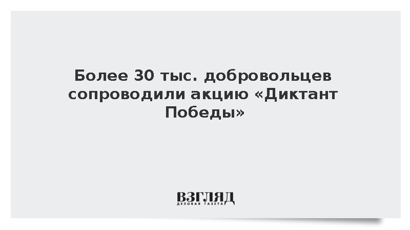 Более 30 тыс. добровольцев движения «Волонтеры Победы» сопроводили проведение международной просветительско-патриотической акции «Диктант Победы» в России и за рубежом, говорится в сообщении, поступившем в газету ВЗГЛЯД.
