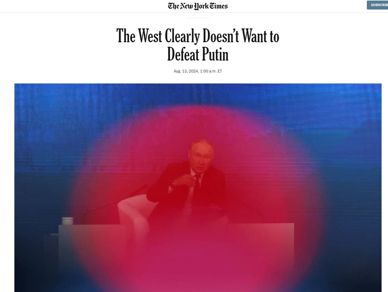 Пока Запад с бессилием наблюдает за происходящим на Украине, Россия становится всё смелее: «Зачем бояться? Несмотря на то, что у Запада есть ресурсы, чтобы закончить этот конфликт на условиях Украины, ему явно не хватает воли к победе. Для Владимира Путина же победа теперь абсолютно достижима», — такое мнение появилось на страницах газеты The New York Times.