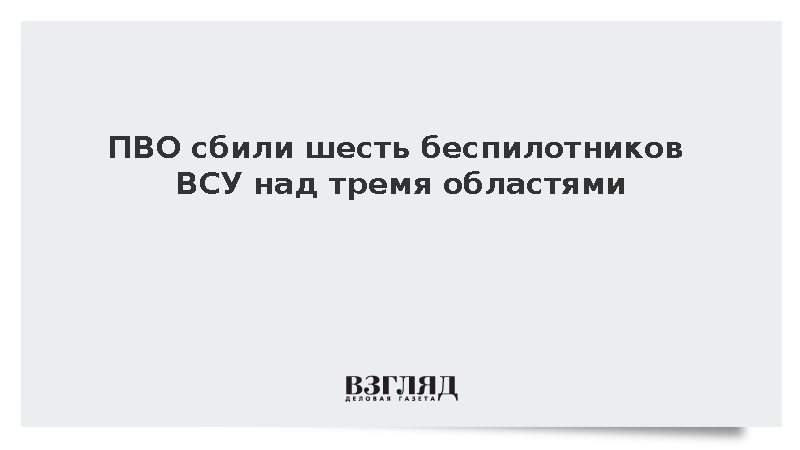 Минобороны России сообщило о том, что системы противовоздушной обороны с 14:00 до 17:00 мск сбили шесть украинских беспилотников над Белгородской, Брянской и Курской областями, передает ТАСС.