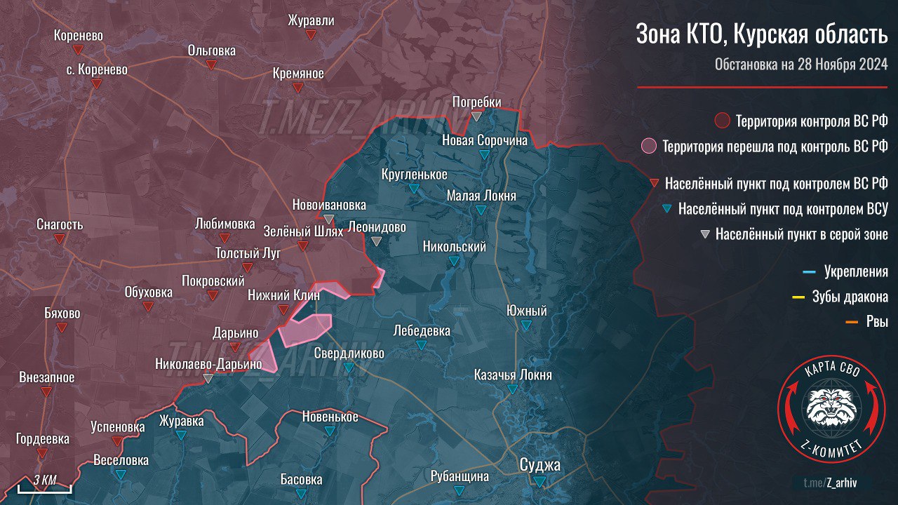 Продвижение подразделений ВС РФ возле населенных пунктов Дарьино и Нижний Клин.