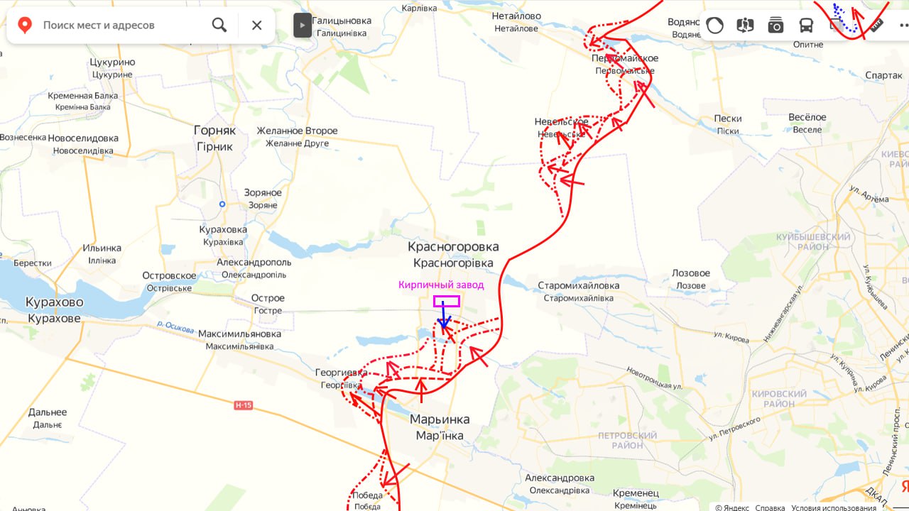 Резервы противника, переброшенные в т.ч. и из района Бердычей-Очеретино, сосредоточившись, нанесли удар по южным районам Красногоровки. Здесь идут упорные бои. Противник вытеснил наши части из южной части города, но сам в свою очередь, несет при этом потери.