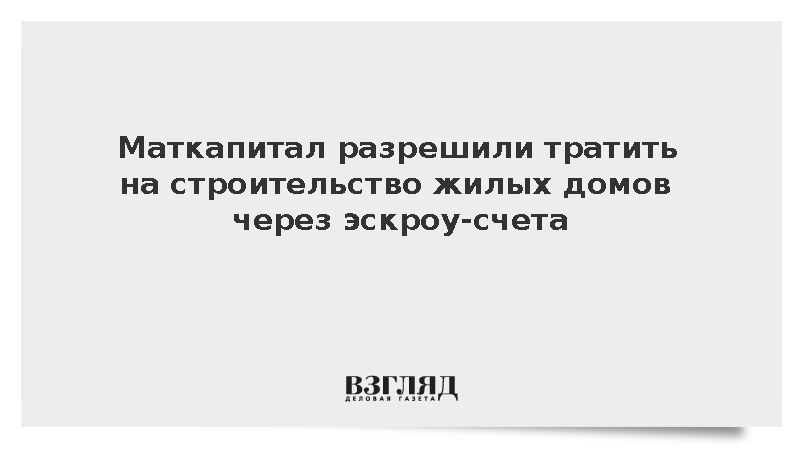 Он устанавливает, что средства маткапитала могут быть потрачены на строительство жилого дома по договору строительного подряда с использованием счета эскроу, передает ТАСС.
