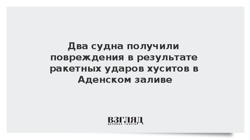 Мятежники из йеменского движения «Ансар Аллах» (хуситы) атаковали два судна в Аденском заливе. Об этом сообщило Центральное командование Вооруженных сил США (СЕНТКОМ).
