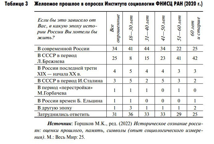 (Возрастные симпатизируют больше эпохе Брежнева, молодые – Путина).