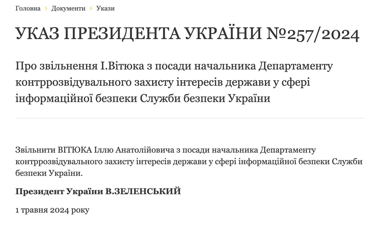 ❌ Зеленский снял с должности уличенного в коррупции главу кибердепартамента СБУ Витюка
