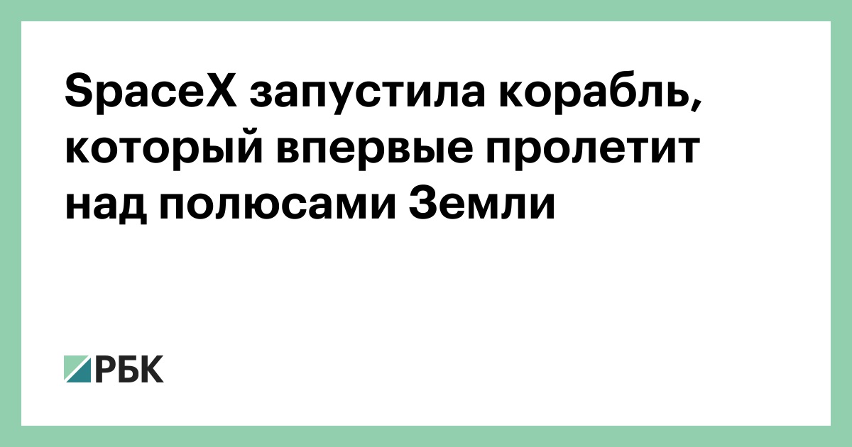 Компания SpaceX предпринимателя Илона Маска запустила космический корабль Crew Dragon, который впервые выйдет на полярную орбиту, передает CNN.