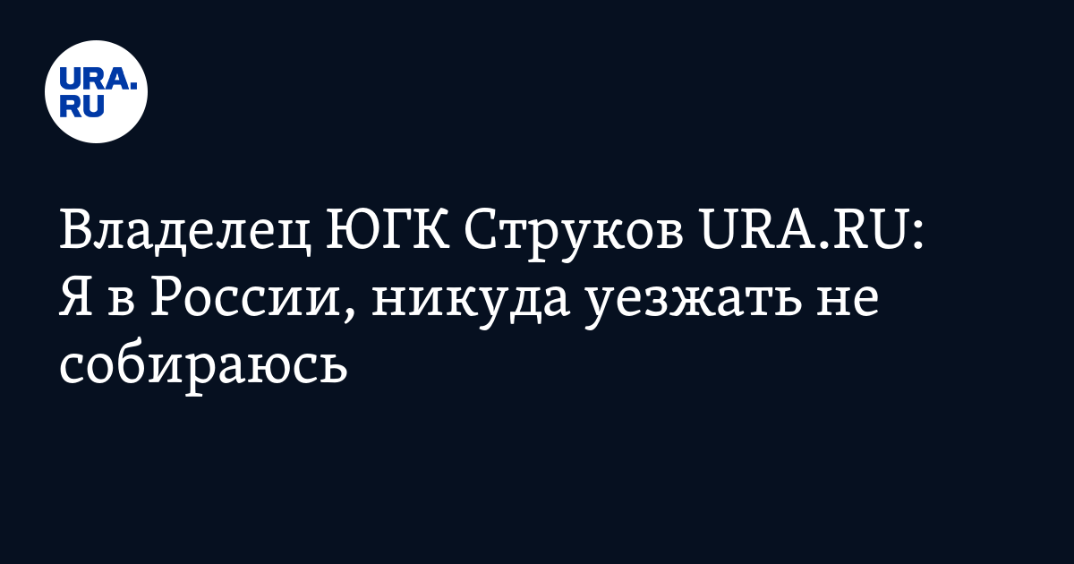 Основной совладелец «Южуралзолото группа компаний» и вице-спикер заксобрания Челябинской области Константин Струков заявил URA.RU, что сейчас он находится в России, в Республике Хакасия. По его словам, покидать страну он не собирается.