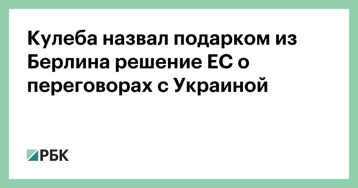 «У нас есть много причин быть благодарными Германии, от военной помощи до финансовой поддержки, но политическая ясность относительно членства Украины в ЕС — это, пожалуй, лучший рождественский подарок из Берлина», — заявил Кулеба. По его словам, на карте Европы больше не будет «серых зон».