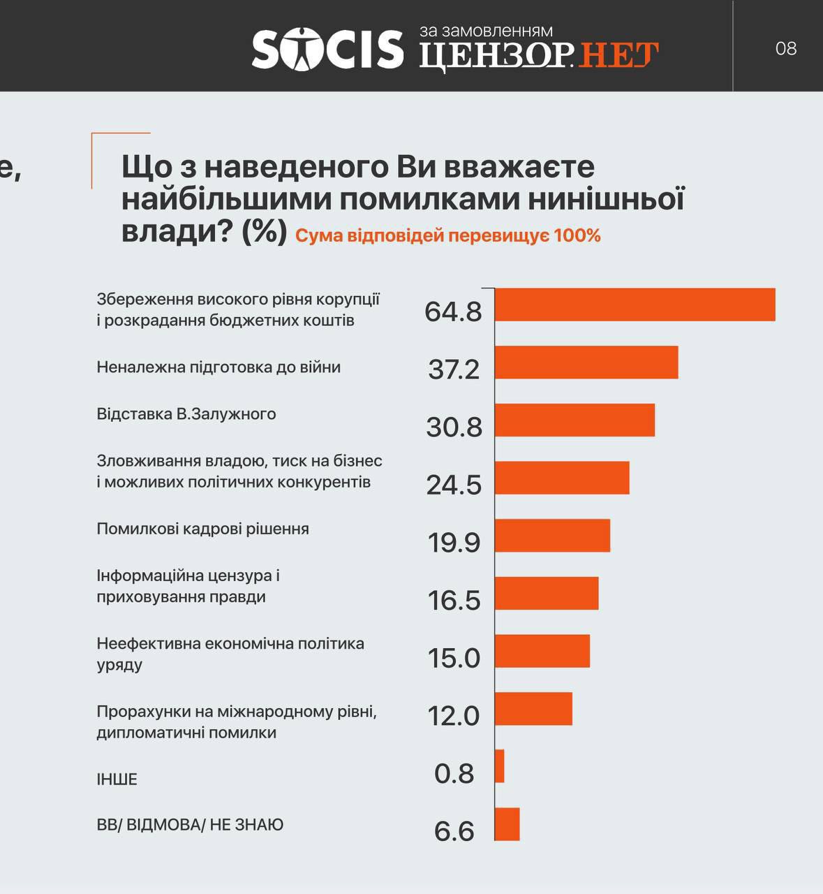 Украинцы продолжают критиковать Зеленского — коррупция, неготовность страны к военным действиям и отставка Залужного продолжают оставаться главными претензиями населения к президенту.