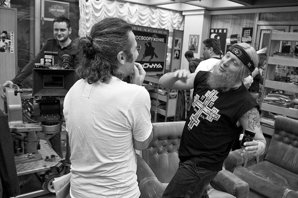 Виктор Гинзбург и Иван Охлобыстин на съемках фильма «Generation П» / Фото: Рустем Адагамов