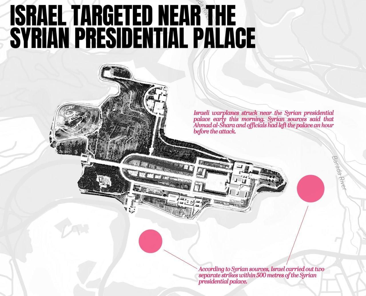 ВВС Израиля сегодня ночью нанесли удар в непосредственной близости от президентского дворца в Дамаске.