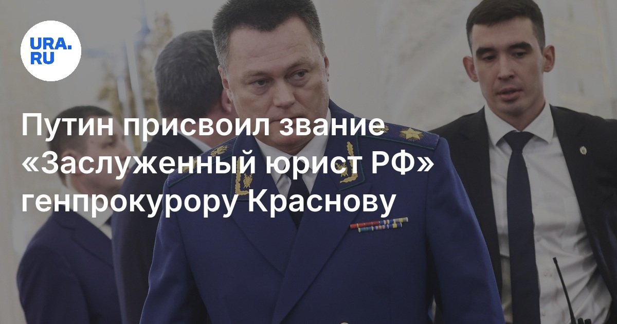 Президент России Владимир Путин подписал указ о присвоении генеральному прокурору Игорю Краснову почетного звания «Заслуженный юрист Российской Федерации». Об этом говорится на сайте официального публикования правовых актов.