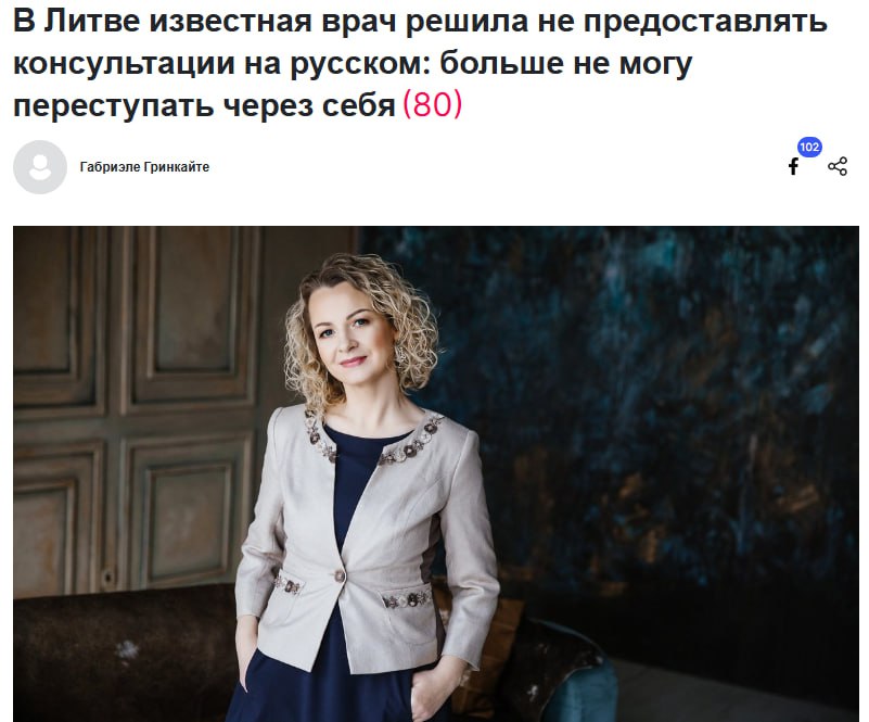 «Я не могу отказываться от моих ценностей. С сегодняшнего дня я не буду предоставлять консультации на русском языке, за исключением случаев, когда в помощи нуждаются недавно приехавшие в Литву украинцы», – написала Плешите-Алмине.