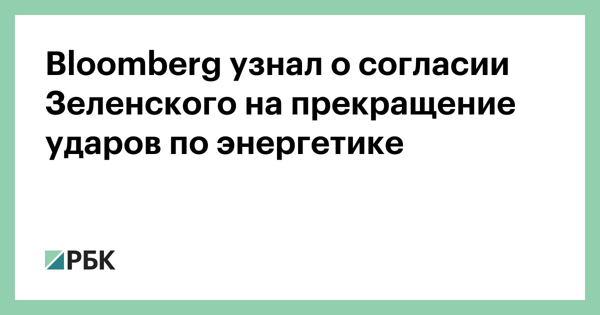 Президент Украины Владимир Зеленский согласился прекратить удары по российским энергетическим объектам, сообщает Bloomberg со ссылкой на источник.