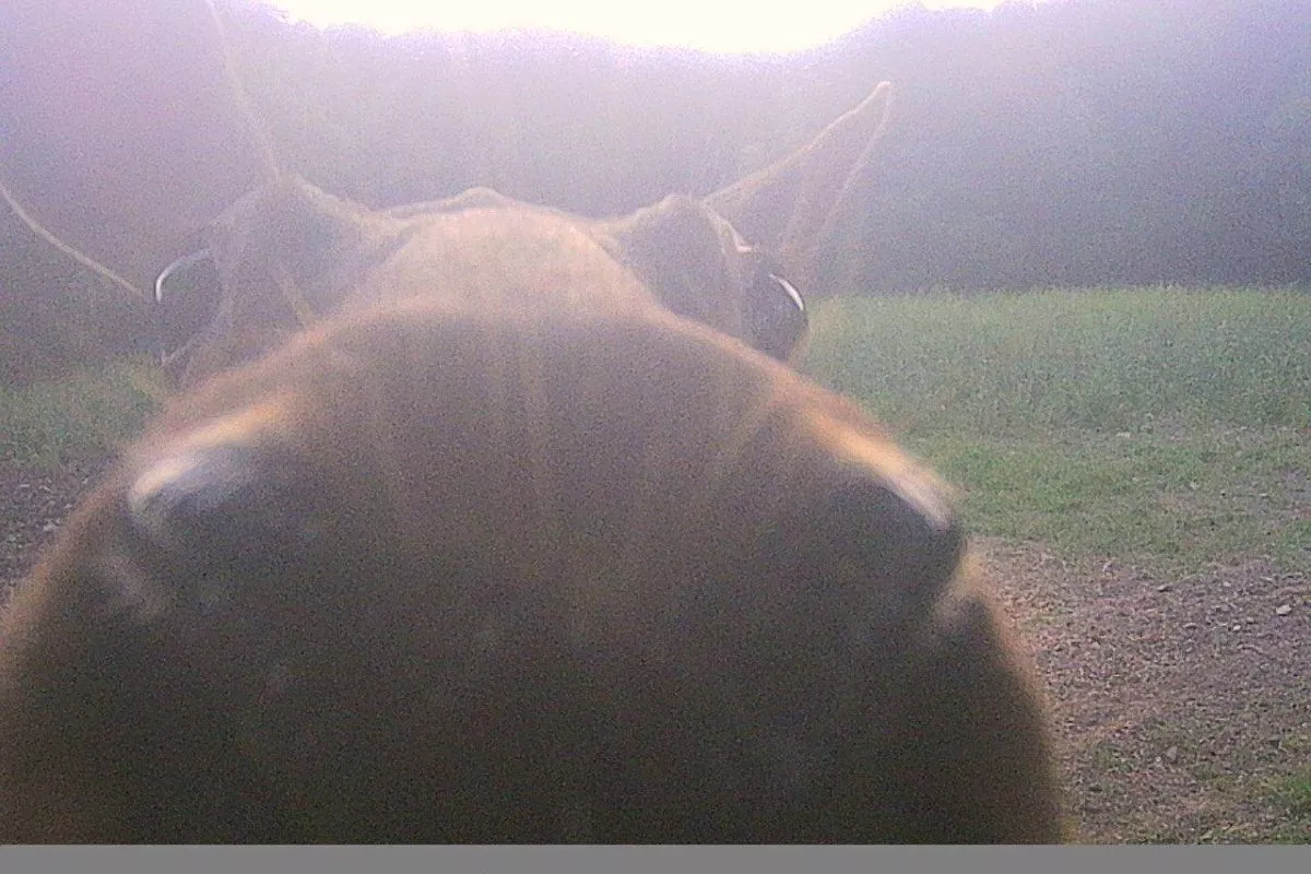В заказнике «Красная Горка» на Кубани фотоловушка сняла благородного кавказского оленя в неожиданном ракурсе. Заинтригованное животное подошло вплотную к камере, пытаясь ее рассмотреть, и в этот момент устройство запечатлело его в забавной позе. На снимке олень получился настолько неузнаваемым, что внешне стал напоминать бегемота.
