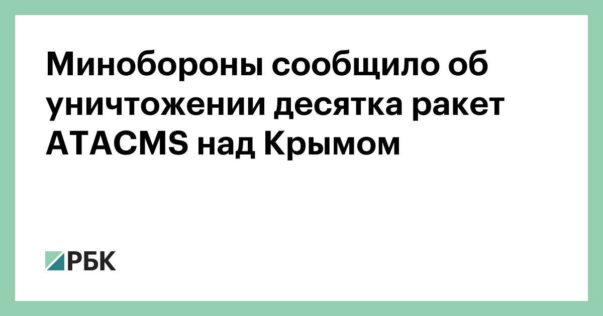 «Дежурными средствами ПВО десять оперативно-тактических ракет ATACMS были уничтожены над территорией Крымского полуострова», — говорится в сообщении.