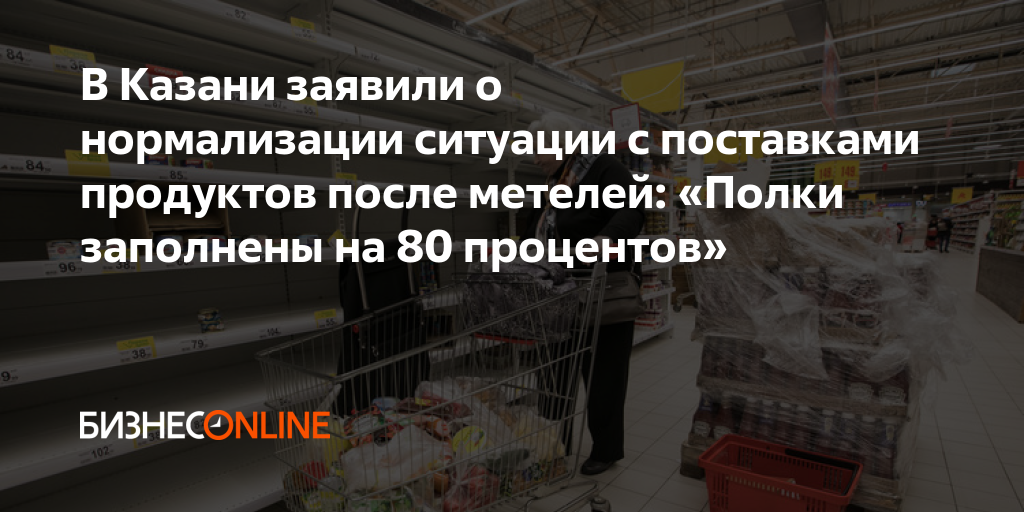 «С момента возникновения этой ситуации для мониторинга были оперативно налажены коммуникации с руководством крупных торговых сетей. Таких в городе более 800, еще есть и несетевые форматы. В начале прошлой недели из-за сбоя поставок по ряду сетей загруженность полок снизилась до критических 60 процентов, но за прошлую неделю для нормализации ситуации сами руководители торговых сетей привлекли дополнительную технику для расчистки снега. Для того чтобы вопрос решался быстрее, подключились и городские коммунальные службы… На сегодняшний день ситуация нормализована, имеются отдельные точки, где из-за ажиотажного спроса на некоторые позиции фиксируется, загрузка полочного пространства не менее 80 процентов, в крупных магазинах превысила 95 процентов», — сказал Шакиров.
