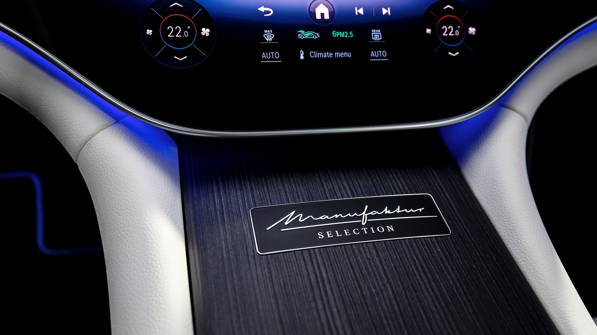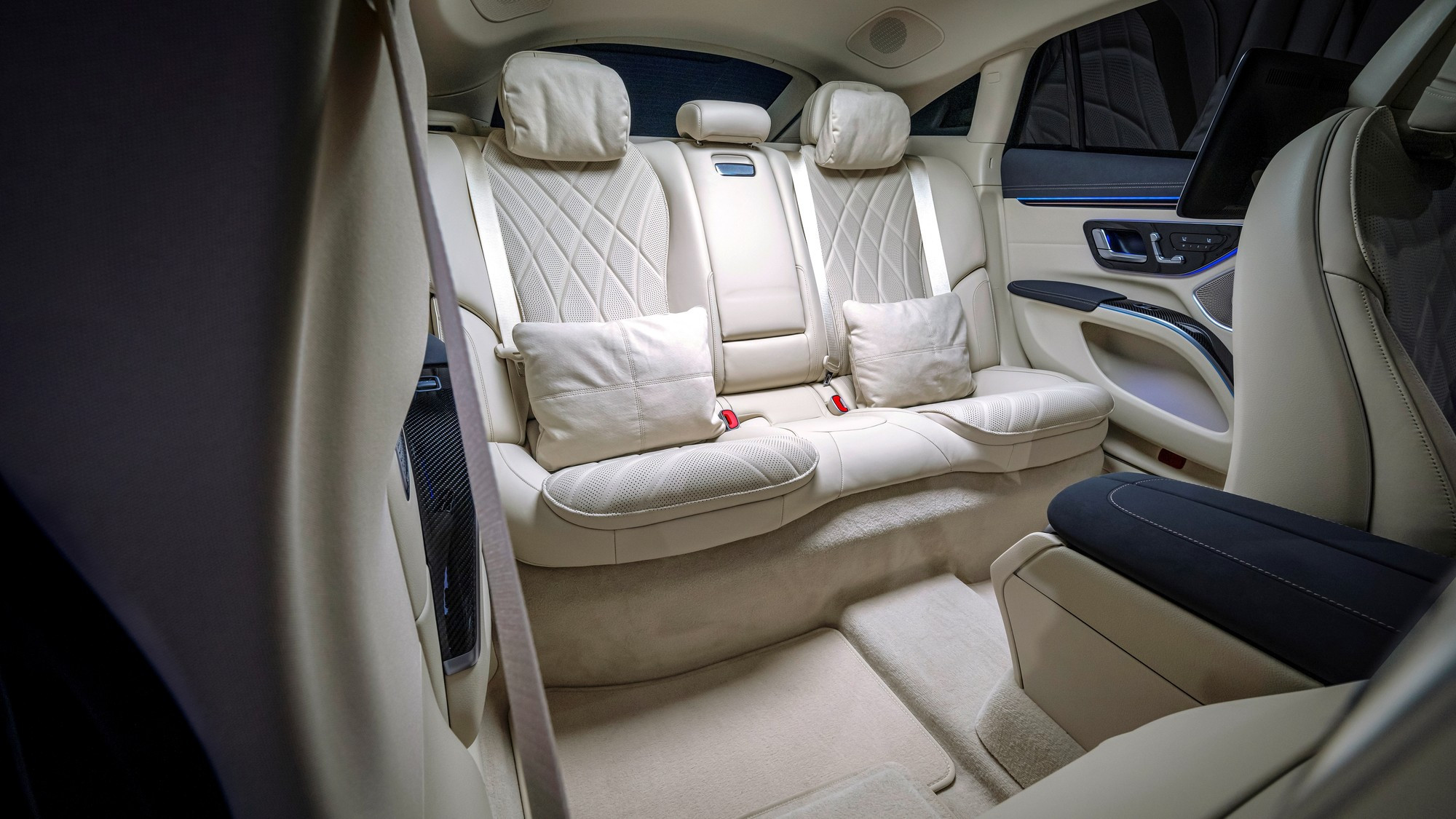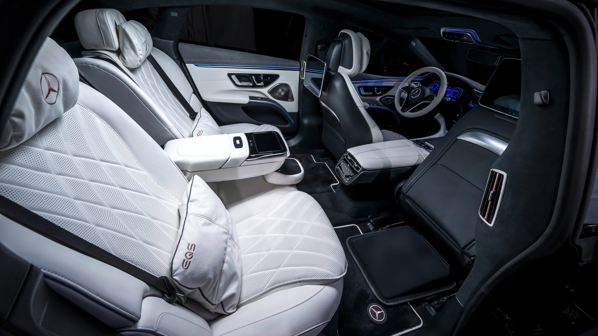 Для салона EQS теперь доступен пакет Rear Comfort Package Plus, повышающий уровень комфорта во втором ряду, в него входят выдвижные подпорки для ног задних пассажиров и увеличенные диапазоны регулировок кресел, чтобы пассажиры могли занять полулежачее положение. За доплату вдобавок предлагаются расширенный обогрев сидений (тепло поступает в район шеи и плеч), регулировка глубины посадки с помощью пневмокамер и подсветка спинок передних кресел. А особо жадным до роскоши клиентам адресовано специальное исполнение Manufaktur Selection с эксклюзивными цветами, эксклюзивным дизайном 21-дюймовых колёсных дисков и эксклюзивной отделкой салона.