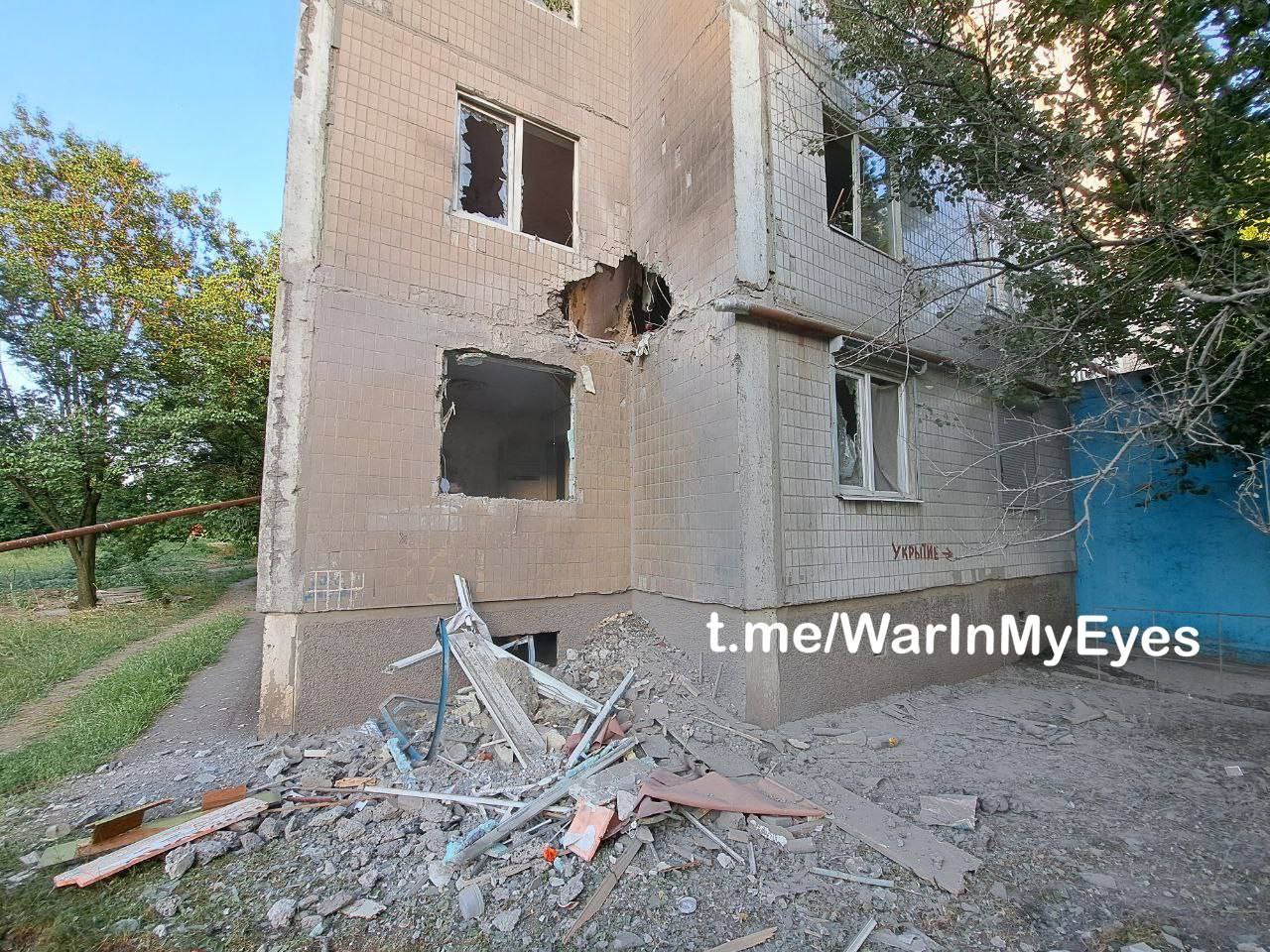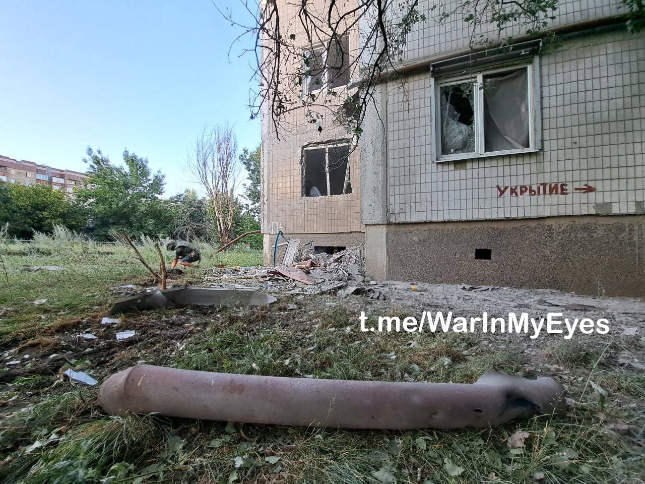 Последствия обстрела Петровского района Донецка из РСЗО T-122 ( Турецкий аналог Града )