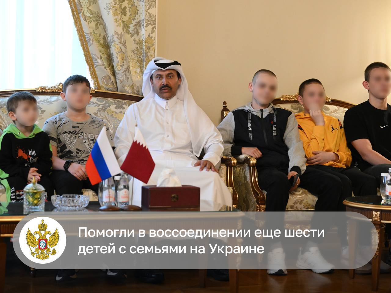 Мария Львова-Белова помогла в воссоединении еще шести детей с семьями на Украине При содействии Уполномоченного при Президенте Российской Федерации по правам ребенка Марии Львовой-Беловой и при посредничестве Государства Катар еще шесть детей воссоединяются со своими родственниками, проживающими на территории Украины. В Москву за ними приехала одна из мам и сопровождающий. «Сегодня по поручению Президента России Владимира Путина воссоединяем очередную группу детей, находившихся в России, со своими родителями и другими родственниками, которые проживают на Украине. Это группа из шести мальчиков от 6 до 17 лет, в том числе два брата, все они жили в России с родственниками и в ближайшее время вернутся домой на Украину», – заявила Мария Львова-Белова. Серьезную помощь в процессе воссоединения оказывает Государство Катар. Представители страны участвуют в переговорах с украинской стороной, сопровождают детей и родственников, несут транспортные и другие расходы. Также в работе участвуют Международный Комитет Красного Креста, Государственный пограничный комитет Республики Беларусь, региональные детские омбудсмены, представители профильных ведомств. 22 мая с ребятами, а также мамой одного из детей и сопровождающим в посольстве Государства Катар в Российской Федерации встретился посол Катара в России Ахмед бен Насер Аль Тани. «Всего за период проведения специальной военной операции при нашем участии удалось воссоединить 70 детей с их родственниками на Украине и других странах, не считая тех ребят, которых родители из Херсонской, Запорожской, Харьковской областей и других территорий осенью 2022 года отправили по своему решению отдыхать в здравницы юга России и не смогли своевременно забрать. Кроме того, шесть детей воссоединились с четырьмя семьями в России», – рассказала детский омбудсмен. Если вы потеряли связь со своим ребенком или не знаете, как вновь оказаться вместе — пишите на нашу почту obr@deti.gov.ru или обратитесь в МККК. 🇷🇺 Новости института уполномоченных по правам ребенка. Подписаться