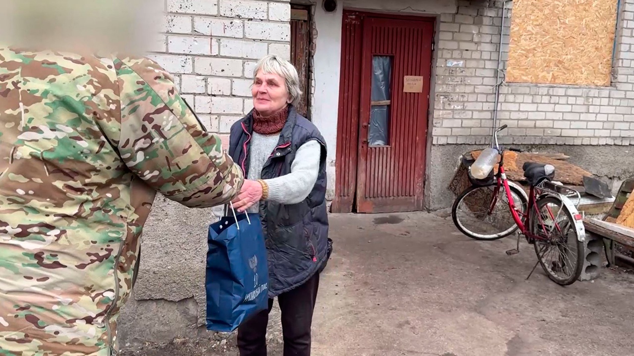 Танкисты поддерживают местных жителей, которые остались дома, несмотря на обстрелы и угрозы ВСУ. Российские солдаты посещают жителей и завозят им продукты, лекарства, теплые вещи, топливо для генераторов и средства первой необходимости, оказывают медицинскую помощь и помогают с оформлением документов.