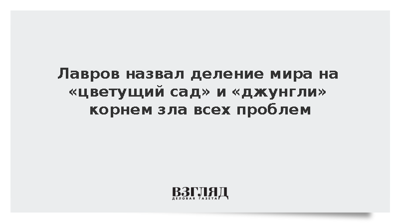«Корень проблем – непрекращающиеся попытки разделить мир на «своих» и «чужих», на «демократии» и «автократии», на «цветущий сад» и «джунгли», на тех, кто «за столом» и кто «в меню» На избранных, которым дозволено все, и остальных, кто почему-то обязан обслуживать интересы «золотого миллиарда», – заявил Лавров.
